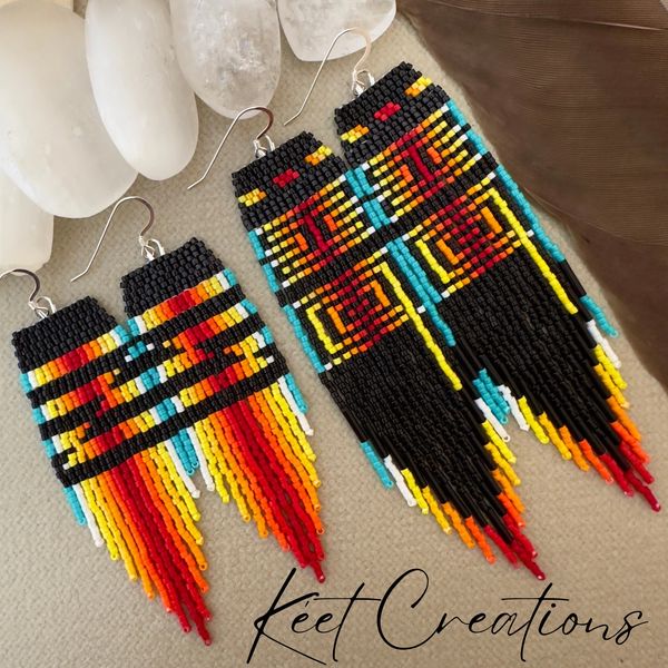 Kéet Creations is an Anchorage, AK based jewelry and art brand founded by Afro-Indigenous artist Julie Ayers. Ayers is best known for her handmade beaded earrings that blend contemporary color palettes with traditional Indigenous designs, particularly those inspired by Tlingit & Nisga’a weaving and regalia.